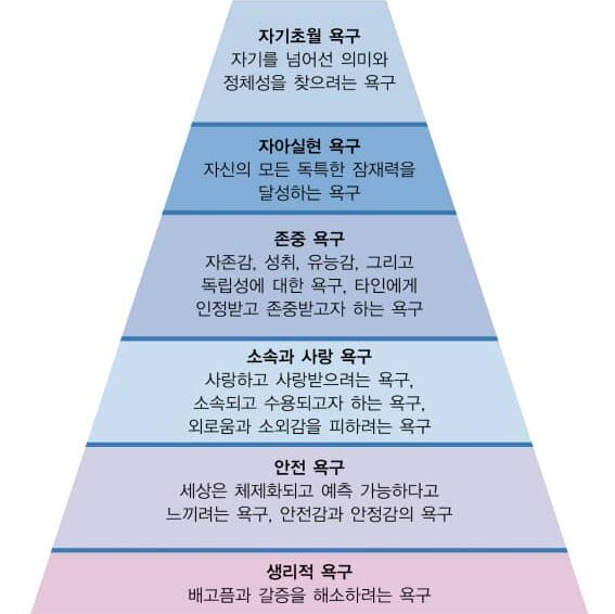 인간의 욕구가 꼭 위계적으로만 움직이지 않기에 매슬로우 이론은 비판받지만, 그럼에도 인간의 행동을 잘 설명해주고, 이론에 부합하는 사례들이 있어 그 가치를 인정받고 있습니다.